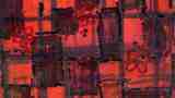 Painted geometric design with blue rectangles on a red abstract background