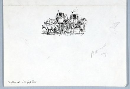 "Lee Gap Fair" (horses and caravans, with men), original drawing used as a tailpiece in "Yorkshire Tour" (1939)